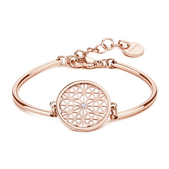 BRACCIALE CHAKRA FIORE DELLA VITA BHK57 BENESSERE, PERFEZIONE, CAMBIAMENTO La perfezione di questo simbolo sta nella sua semplicità, che racchiude in sé l’eterno processo creativo, aiutando ad equilibrare ogni struttura e renderla perfettamente armoniosa. E’ metafora di benessere e di rigenerazione. Bracciale in acciaio 316L, pvd oro rosa con piastrina incisa e cristallo Swarovski® Elements.