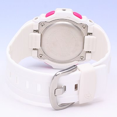 Orologio da donna della collezione Casio Baby-G. Cassa rotonda realizzata in acciaio inossidabile, con quadrante rosa e numeri elettronici protetti da vetro minerale. Cinturino in gomma. Funzioni aggiuntive: calendario automatico, ora mondiale, formato orario 12/24 ore, retroilluminazione, cronometro, timer per il conto alla rovescia, sveglia, attivazione / disattivazione del suono. Resistente all’acqua fino a 20 BAR.