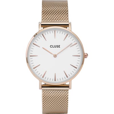 Orologio Solo Tempo Da Donna Di Cluse Della Collezione La Bohème. Modello Realizzato In Acciaio E Pvd Oro Rosa. Questo Orologio Ha Cassa Di 38Mm, Con Finitura Pvd Oro Rosa, Quadrante Di Colore Bianco E Vetro Minerale. La Cassa Ha Uno Spessore Di 7 Mm. Questo Modello Ha Bracciale In Metallo Di Colore Oro Rosa, Con Fibbia Gioielleria. La Resistenza All'Acqua È Di 3 Atm. Questo Orologio Dispone Di Un Quadrante Oversized Con Dettagli Minimali E Una Rifinitura Molto Sottile. La Referenza È CL18112 Questo solo tempo verrà spedito con Scatola Originale Cluse + GARANZIA.