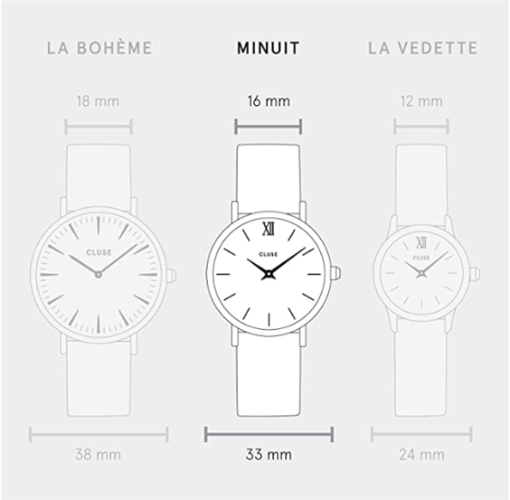 La collezione Minuit rende omaggio alle notti stellate e all'eleganza serale. Il design delicato fa di questo orologio leggerissimo l'accessorio perfetto per un look moderno, ma raffinato. L'orologio presenta un quadrante di 33 mm, in cui la combinazione di bianco e dettagli in argento crea un attraente stile minimalista. Il cinturino è facilmente intercambiabile e consente di personalizzare l'orologio.