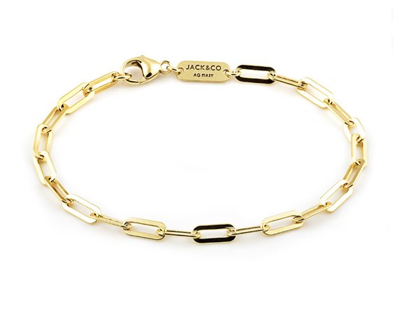 Bracciale Jack&Co Square Gold a catena squadrata placcata oro giallo. Lunghezza: 19 cm. Argento 925 Made in Italy.
