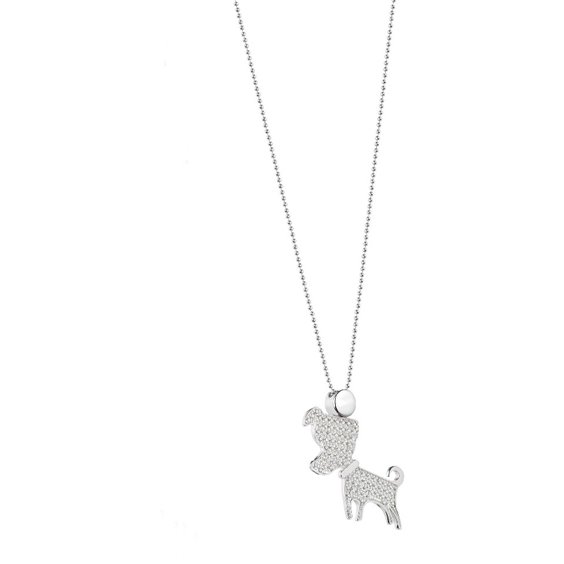 Collana Jack&Co da donna in argento della collezione Amoglianimali. Collana con charm Jack grande con zirconi. Lunghezza 85 cm. La referenza è JCN0573