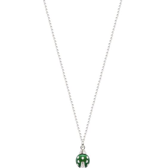 Collana Jack&Co Della collezione Candy in argento. Charm a forma di coccinella 3D con smalto verde. Lunghezza 50-60 cm.