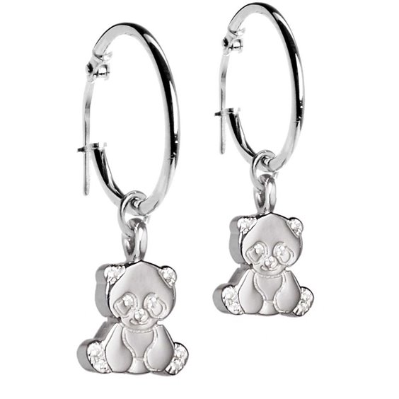 Orecchini a veretta mm 16 diametro, con appeso simpatico panda 3D con zirconi 15 mm.