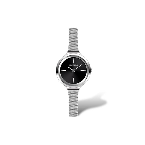 Cassa 32 mm in acciaio lucido / Quadrante nero / Bracciale mesh in acciaio lucido