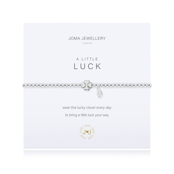 Bracciale in ottone placcato argento Joma Jewellery. Messaggio: a little luck. Wear this lucky clover every day to bring a little luck your way