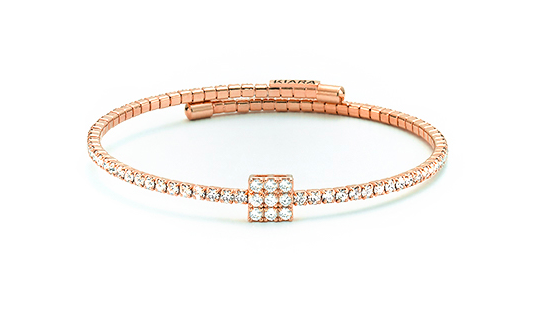 BRACCIALE IN OTTONE PVD ORO GIALLO CON CRISTALLI. MOLTO FLESSIBILE SI ADATTA AD OGNI POLSO.