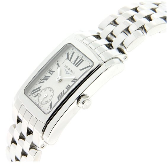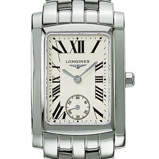 Orologio da donna rettangolare Longines Dolce Vita. Swiss Made. Cassa e cinturino in acciaio. Dimensioni cassa 22×35 mm. Secondi a ore 6.