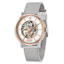 Questo orologio Maserati ha una cassa in acciaio inox con un diametro di 42 mm ed è dotato di un cinturino in Metallo. All'interno ha un movimento automatico per orologi di qualità ed è finito con un vetro di tipo minerale. L'orologio è impermeabile a 10ATM. Questo significa che l'orologio è adatto al nuoto, verrà spedito con Scatola Originale Maserati + GARANZIA.
