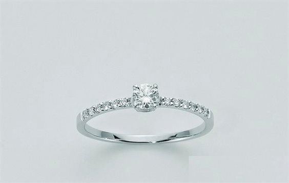 Oro 750/1000. Nr 12 Diamanti Pt. tot. 8.4. Col. G Selezionato Taglio brillante rotondo. Nr. 1 Diamante Pt. tot. 15. Col. G Selezionato. Taglio brillante rotondo. Microfusione Griffes/Sgriffatura