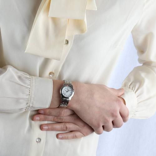 Orologio donna in acciaio 316L , movimento al quarzo RONDA 585 , cassa mm 28 quadrante bianco con numeri romani neri , fondello a pressione , datario , vetro zaffiro , cinturino in acciaio lucido e satinato con chiusura a pulsanti.Immagine indicativa , la confezione può variare in forma e colore.