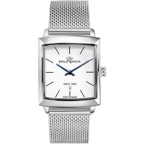 Orologio Philip Watch Newport - R8253213003 - Dimensione cassa: 35x30, Materiale cinturino: metallo, Colore quadrante: Bianco opaco, Materiale: Acciaio Inox, Spessore cassa: 9.00, Fibbia: Clip and hook, Garanzia: Ufficiale 2 anni Philip Watch, Confezione: Originale Philip Watch, Philip Watch experience: Elegance
