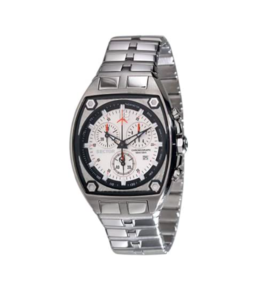 Orologio cronografo da uomo Sector. Cassa e cinturino in acciaio. Vetro minerale. Fondo a vite. Water Resistant 10 ATM. Movimento al quarzo con cronografo e datario.