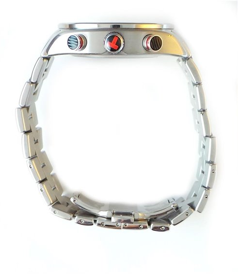Orologio Cronografo con data, cassa e cinturino in acciaio, movimento svizzero al quarzo, vetro zaffiro, impermeabile 10 ATM, quadrante antracite e nero, misure diametro 44mm. Completamente Swiss Made