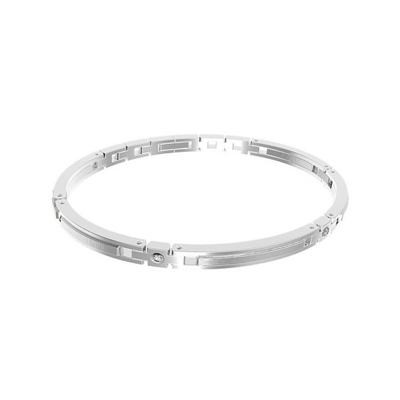 Bracciale da uomo Zancan collezione Hi Teck. Gioiello in acciaio 316L e zaffiri bianchi. Bracciale costituito da acciaio 316L medicale lucido e satinato. Gioiello di misura 21 Cm. Possibilità di stringere il bracciale attraverso le maglie poste vicino alla chiusura. La chiusura a clip.