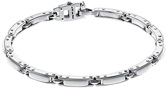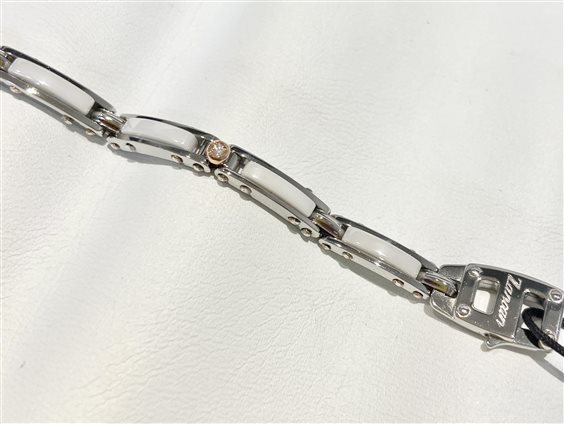 Bracciale da uomo Zancan in acciaio, ceramica e particolare in oro rosa e diamante ct 0,015.